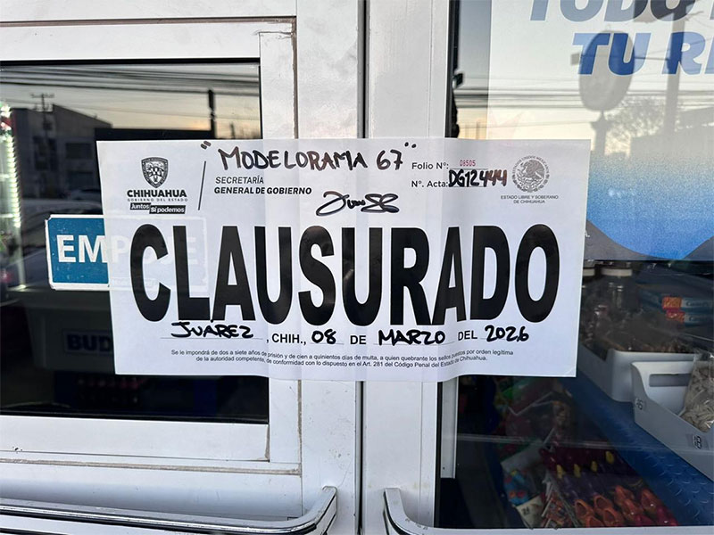 Dichas acciones dieron como resultado un total de 10 clausuras, de las cuales tres fueron en Chihuahua, una en Delicias y seis en Ciudad Juárez.