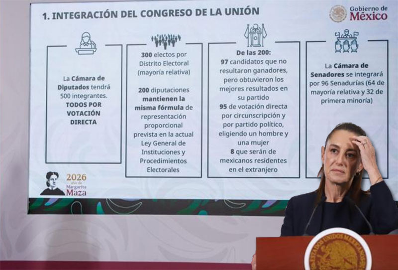 La jefa de Estado informó que el Plan B de la reforma electoral “incluye modificaciones a la Ley General de Instituciones y Procedimientos Electorales”, entre las que destacan la revocación del mandato del titular del Ejecutivo, así como modificaciones a la elección judicial.