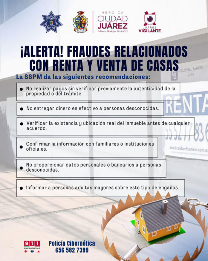 La Secretaría de Seguridad Pública Municipal, a través de la Dirección de Investigación y del Área de Delitos Cibernéticos, alerta a la ciudadanía sobre una modalidad de fraude relacionada con la supuesta renta o venta de viviendas, generada a través de anuncios digitales o físicos.