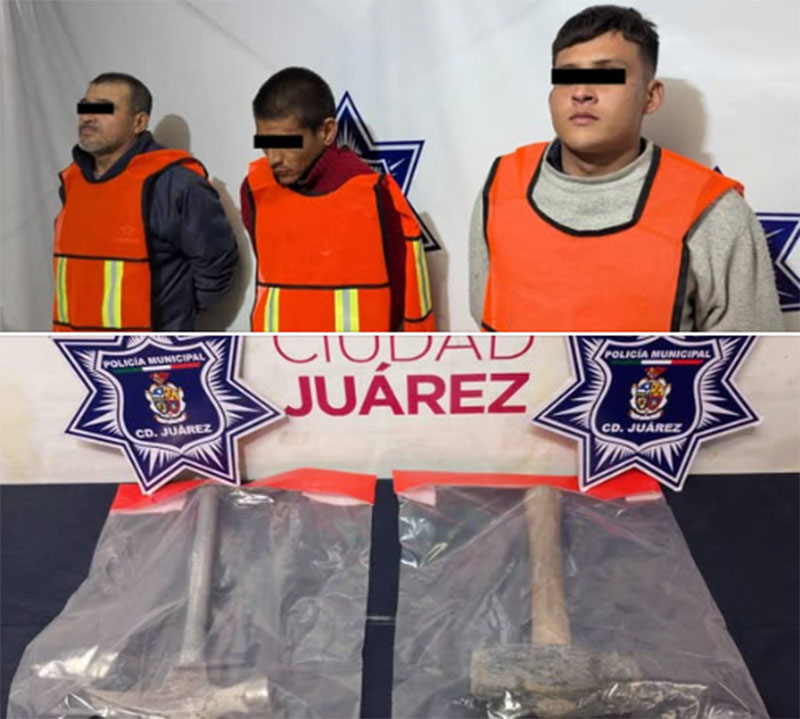 Razón por la cual fueron detenidos quienes dijeron llamarse Javier M. M. de 36 años, Ángel Guillermo H. A. de 24 años y Pedro S. R. de 58 años, mismos a quienes se les aseguró dos instrumentos de metal pesado con los cuales cometieron el delito.