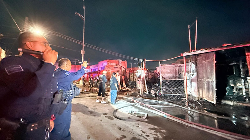 En atención a una llamada de emergencia recibida al número de emergencia 911, donde reportaron un incendio en unas bodegas ubicadas en el cruce de las calles Globo y Amado Nervo, se movilizaron de manera inmediata para brindar apoyo a un ciudadano que le era difícil salir de uno de los negocios afectados.