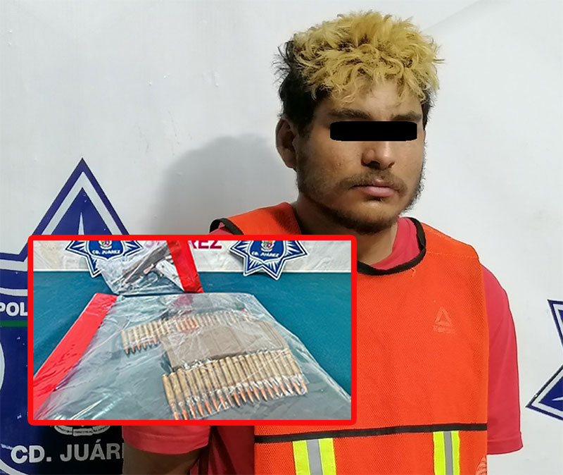 Agentes de la Secretaría de Seguridad Pública Municipal capturaron a Adrián R., por su presunta responsabilidad en la comisión de delitos contra la ley federal de armas de fuego y explosivos y amenazas, asegurándole un arma corta y varios cartuchos útiles para fusil de asalto.
