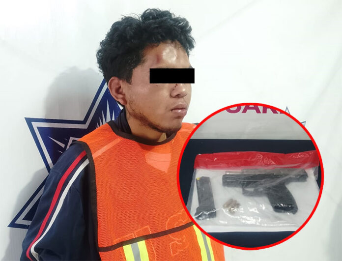 Agentes de la Secretaría de Seguridad Pública Municipal arrestaron a Gerardo Felipe G. C., por su presunta responsabilidad en la comisión del delito de robo a comercio con violencia en grado de tentativa, lesiones y contra la ley federal de armas de fuego y explosivos.