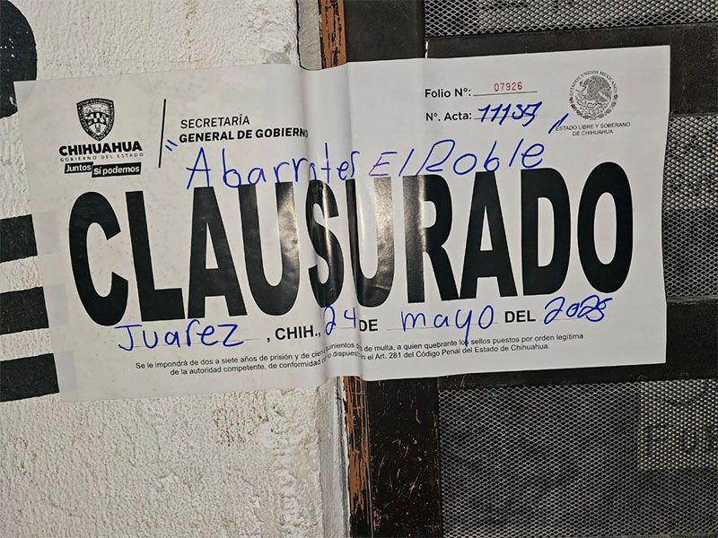 Estas inspecciones dieron como resultado un total de 17 clausuras: una fue en Chihuahua, tres en Cuauhtémoc, una en Guerrero, una en Bachíniva y once en Juárez.