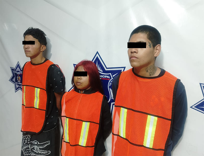 Agentes de la Secretaría de Seguridad Pública Municipal detuvieron a Raúl Aarón M. B., por su presunta responsabilidad en la comisión de los delitos de homicidio en grado de tentativa, contra la salud, violación a la ley federal de armas de fuego y explosivos, mientras que Perla Janeth C. E. y Adrián René C. M. por delitos contra la salud y desobediencia y resistencia de particulares.