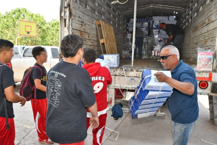Posteriormente, en Janos se distribuyeron 1,000 pares de tenis, 1,650 paquetes de útiles escolares y 1,650 mochilas y juegos infantiles para un centro educativo; mientras que en Ascensión fueron 4 mil 377 pares de tenis y 4 mil 377 paquetes de útiles.