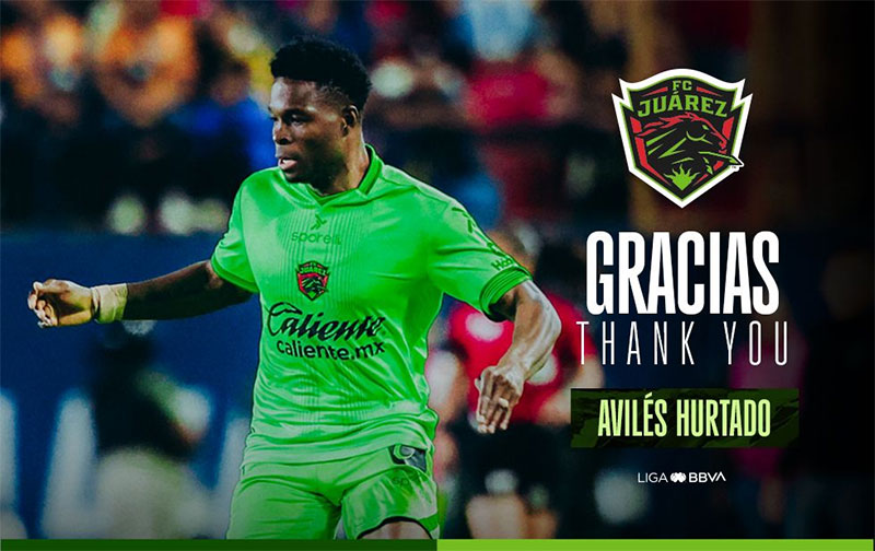 Futbol Club Juárez informa que finaliza la relación laboral del futbolista colombiano Avilés Hurtado con el club, por lo que el jugador no continuará con el equipo para el próximo Torneo Apertura 2025.