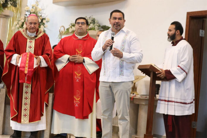El Presidente Municipal, Cruz Pérez Cuéllar, en compañía de su esposa, Rubí Enríquez, acudieron a la iglesia donde se celebró una misa en honor a San Judas Tadeo.
