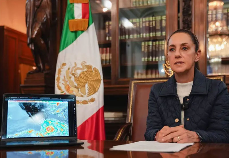 En presencia de la jefa de Estado, el titular de la Marina compartió que el huracán ingresó a tierra a las 05:00 horas de este jueves 19 de junio y que la zona de impacto fue en las inmediaciones de Corralero, Oaxaca.