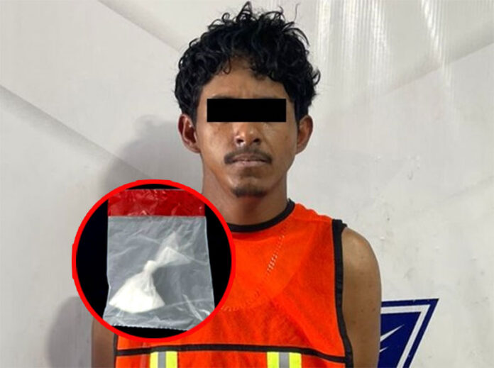 Al percatarse de su conducta, los oficiales se acercaron al individuo, identificándose debidamente para dialogar con él, se le informó que su comportamiento constituía una falta administrativa, pero este mostró una actitud sospechosa, por lo que fue sujeto a una inspección preventiva, durante la cual se localizó en la bolsa derecha de su short un envoltorio de plástico con aproximadamente 12 gramos de cristal, procediendo con su detención.