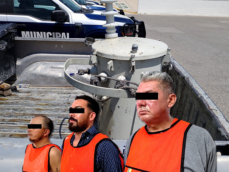Agentes municipales sorprenden a tres sujetos robando un transformador en la colonia Kilómetro 20