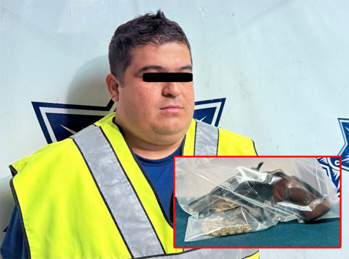 Elementos de la Secretaría de Seguridad Pública Municipal arrestaron a Luis Fernando G. M., por su presunta responsabilidad en la comisión de delitos contra la ley federal de armas de fuego y explosivos.